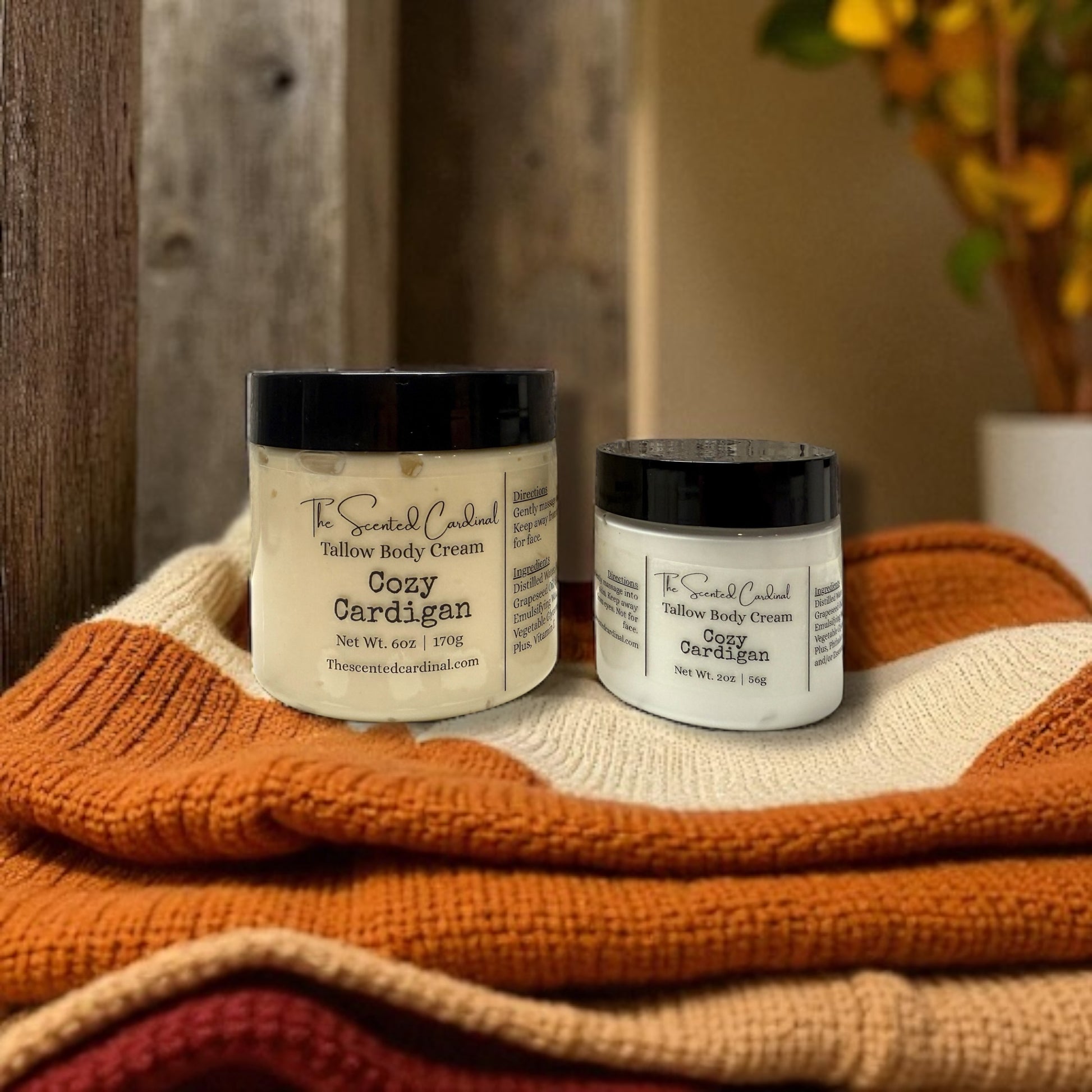 Distilled Water, Beef Tallow, Grapeseed Oil, Shea Butter, Cetearyl Alcohol, Emulsifying Wax NF, Organic Vegetable Glycerin, Phthalate-Free Fragrance and/or Essential Oils, Optiphen Plus, Mica